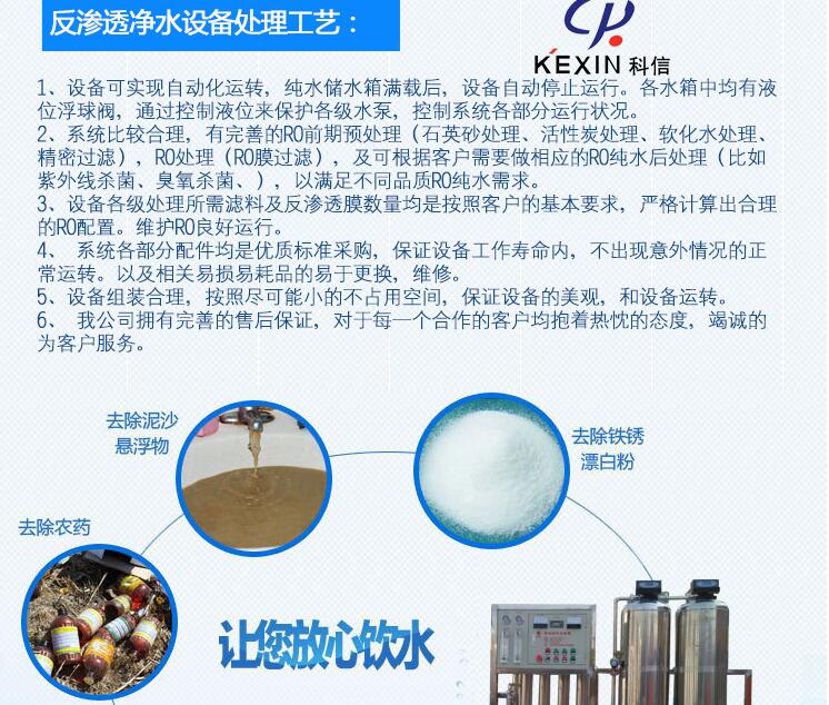 2.系統(tǒng)比較合理,有完善的RO前期預(yù)處理(石英砂處理、活性炭處理、軟化水處理、精密過(guò)濾),RO處理(RO膜過(guò)濾),及可根據(jù)客戶需要做相應(yīng)的RO純水后處理(比如紫外線殺菌、臭氧殺菌、),以滿足不同品質(zhì)RO純水需求。