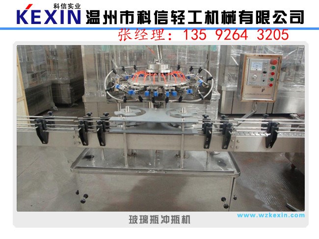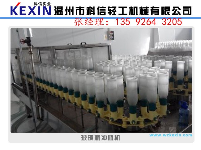 溫州科信全自動洗瓶機采用循環(huán)熱水沖洗、溫水預熱、凈水洗凈等多段處理,具有節(jié)水、節(jié)熱能等優(yōu)點;