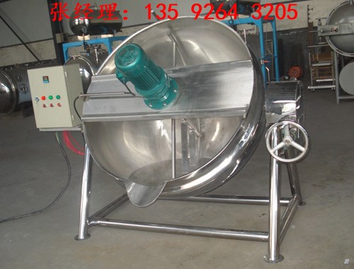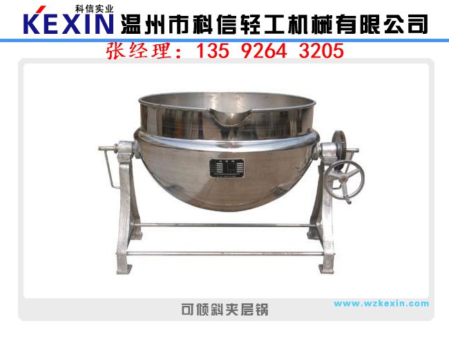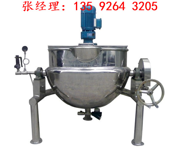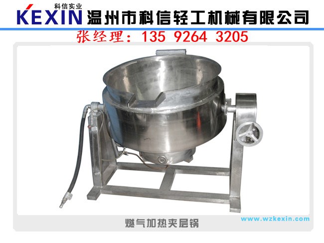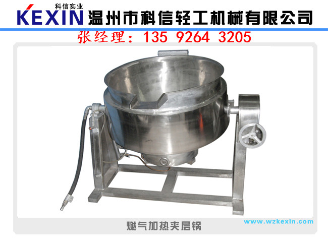 夾層鍋又名蒸汽鍋、蒸煮鍋、夾層蒸汽鍋。通常由鍋體和支腳組成。鍋體是由內(nèi)外球形鍋體組成的雙層結(jié)構(gòu)形式,中間夾層通入蒸汽加熱。有固定式、可傾式、攪拌式等樣式。夾層鍋具有受熱面積大、熱效率高、加熱均勻、液料沸騰時(shí)間短、加熱溫度容易控制、外型美觀、安裝容易、操作方便、安全可靠等特點(diǎn)。夾層鍋廣泛應(yīng)用于各類食品的加工,也可用于大型餐廳或食堂熬湯、燒菜、燉肉、熬粥等,是食品加工提高質(zhì)量、縮短時(shí)間、改善勞動(dòng)條件的良好設(shè)備。