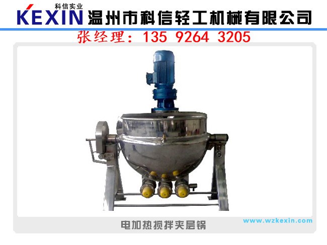 導(dǎo)熱油夾層鍋也叫電加熱夾層鍋,是采用耐酸耐熱的304不銹鋼制造,配有壓力表和安全閥、電控箱。設(shè)備美觀、安裝容易、操作方便、安全可靠。